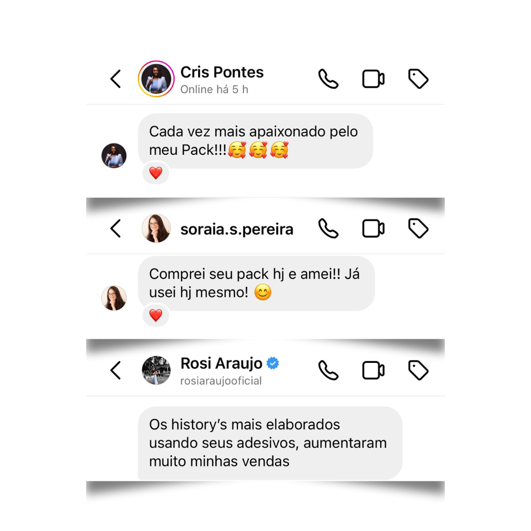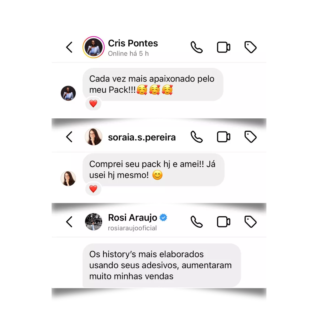 Nele você encontra uma ampla seleção de adesivos para dar um UP na sua produção de conteúdo. Além de ter acesso vitalício, o que significa que você continuará recebendo todas as atualizações que eu fizer, sem pagar nada a mais por isso.
